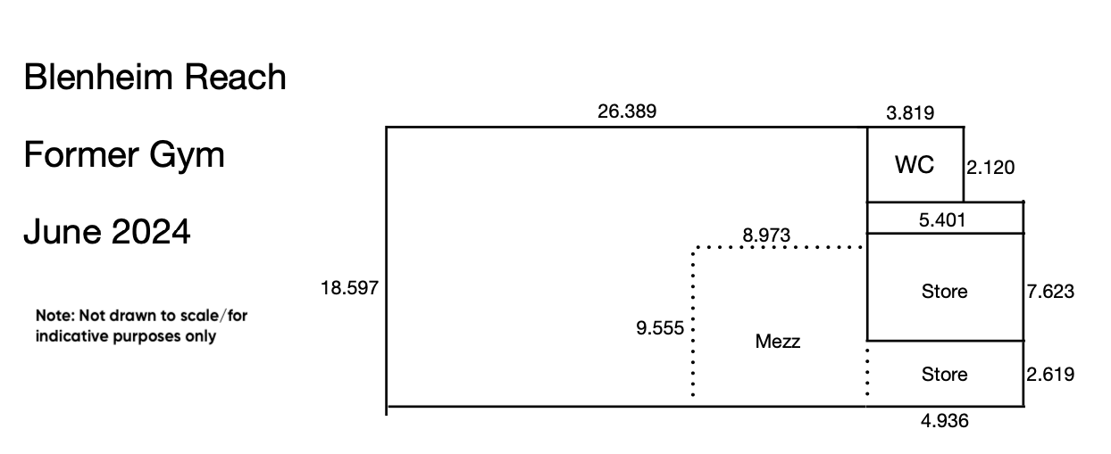 The industrial space on offer was previously used as a gym. It is open plan with mezzanine, and has it's own WC and storage (see basic plan). The property has sliding access doors and has the benefit of on site parking. We are informed that the eves height is 4.7m. It would suit a variety of users.